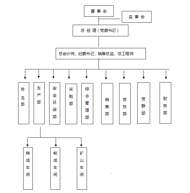 三門峽騰躍同力水泥有限公司位于河南省澠池縣境內(nèi),地處晉、陜、豫三省交匯處,緊靠連霍高速公路、310國(guó)道,交通便利。公司總面積274175.46m2,公司類型為一人有限責(zé)任公司。公司實(shí)行董事會(huì)領(lǐng)導(dǎo)下的總經(jīng)理負(fù)責(zé)制,下設(shè)綜合管理部、生產(chǎn)部、財(cái)務(wù)部、采購(gòu)部、市場(chǎng)部、銷售部、物流部、質(zhì)量技術(shù)部、安全環(huán)保部、黨群部。生產(chǎn)部下設(shè)燒成車間、制成車間、礦山車間。